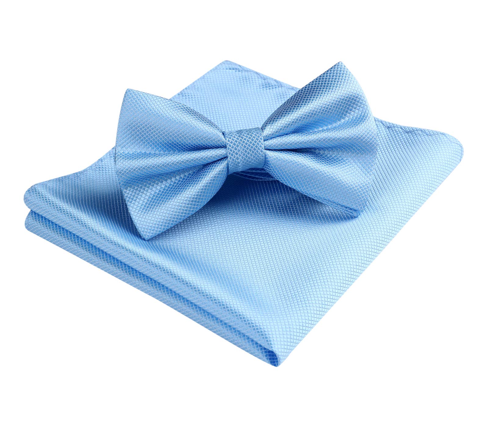 HISDERN Men's Solid Color Pre-tied Bow Tie Adjustable Tuxedo Two Layer Bow Tie and Pocket Square Set with Gift Box