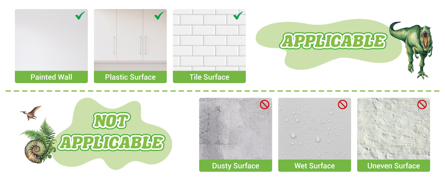 I was looking for something to decorate a Dinosaur schemed bathroom for my son, and found this product. Originally I wanted to purchase some printed pictures and frame them. But when I saw this sticker set, it came up to me that I may try to customize my own dinosaur picture. So I did! My son loves the outcome! The stickers are easy to remove. Cuts are neat and precise. I put them on some card stock paper, and had no difficulties with peeling them off and re-applying when I wanted to make rearrangements. It didn't hurt the paper at all. And they are big in size. I still have a stegosaurus and a triceratops left behind due to the size limit of the the frame (about 28" *14") I used. But I am sure my son will enjoying using them somewhere else he prefers. I will recommend this to whoever has a dinosaur kid.