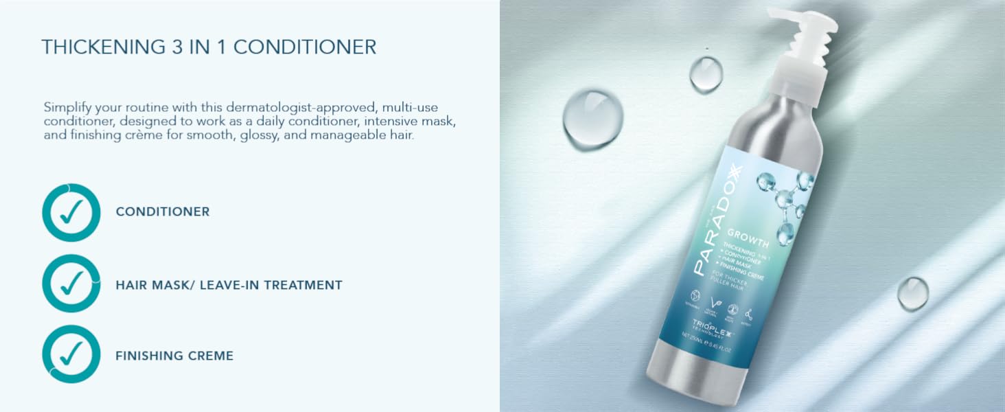 Hair Conditioner 250ml, Growth Thickening 3-in-1, Hair Mask, Leave-In Treatment & Finishing Crème, Thicker Fuller Hair, Gift For Her, Travel Size, 99% Natural, Vegan and Cruelty Free