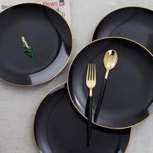 Nervure’s 100-pack of 10.25-inch black disposable plates features a luxurious gold rim and heavyweight BPA-free plastic construction. Designed for durability and elegance, these recyclable plates are perfect for weddings, holidays, and upscale gatherings, combining convenience with a sophisticated look that impresses guests and simplifies cleanup.
