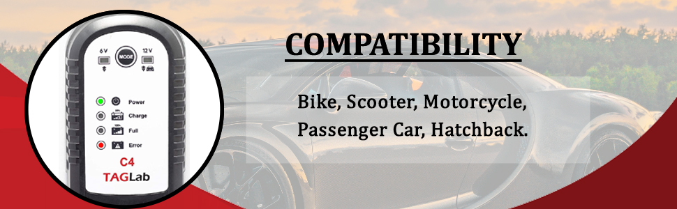 Due to lockdown with limited usage, my car battery got drained, My car uses a Lead Battery. I used TAGLab C4 Battery Charger to charge it....This charger is very easy to use, light weight and very convenient, just connect the positive clip to positive terminal, negative to negative set the mode and done. As the battery was completely drained, it took around 12 hours to completely charge. Worked like a charm...Its always good to have this product.Quality and build is also very good.On a side note, this is a Mumbai based company, so glad Its Made in Bharat.