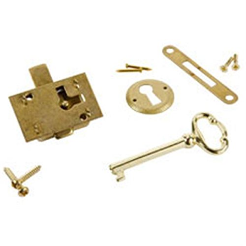 Surface Mount Cabinet Lock. For light-duty applications. Overall size is 1-5/8" x 1" x 3/8". Brass plated and includes escutcheon.
