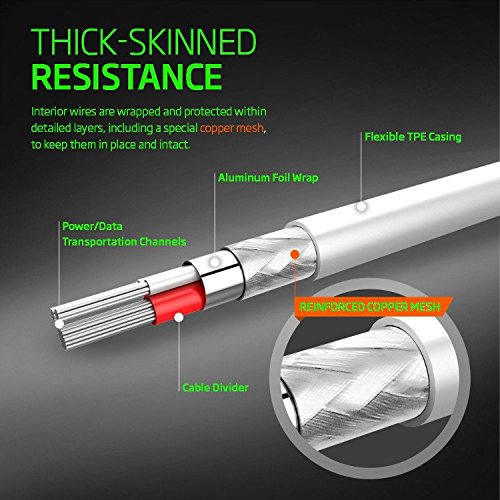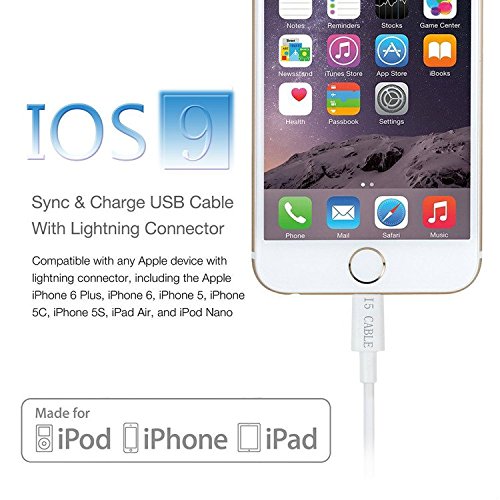 All cables are created equal, right? WrongI5 Cable(TM) product's lightning cable has what most cheap replacements don't, the "guts" to do the job. Inside is a specialized micro chip that actually communicates with your device confirming your cable is safe and compatible. Apple developed this technology to protect people like you from cheap third-party accessories that can damage your phone. Without this specialized internal circuitry your Apple device will not charge or sync properly. It's what's on the inside that counts Premium Copper wiring wrapped in ultra durable and lightweight TPU housing protects wires cores from over-heating and resists kinks. Re-enforced ends are built to withstand the demands of constant plugging and unplugging without wearing out. Precision soldering prevents breakage providing you with long-lasting and dependable connection between your charger and apple device. Plug and play Seamlessly sync and charge your phone at the same time on your Windows PC or Mac or just plug directly into your wall or car USB charger. Compatibility Works with iPhone 6 6Plus iPhone 6s 6sPlus iPhone 5/5s/5c, iPad 4/5, iPad Air, iPad mini 1/2/3, iPod touch 5/6, iPod Nano 7. Perfect fitLow profile end is the same size as Apple's original lightning connector.