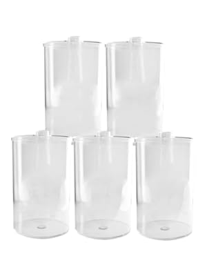 This set of 5 clear plastic sundry jars, each measuring 6.5 inches in height and 4 inches in diameter, is ideal for organizing items in medical offices, restrooms, or any space that needs a touch of elegance and functionality.