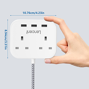 The LENCENT Extension Lead is a versatile power strip featuring 2 AC outlets and 3 USB ports, allowing you to charge up to 5 devices simultaneously. With a maximum capacity of 3250 watts and advanced safety features, this power strip is perfect for home, office, or travel use.