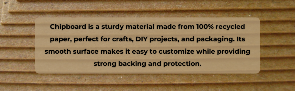 This 50-sheet pack of 6x6 inch chipboard features a robust 0.046 inch (46pt) thickness and 610 gsm weight, providing a sturdy, neutral-toned base ideal for scrapbooking, framing, and protective uses. Crafted from 100% recycled clean fibers, it combines durability with eco-conscious design, perfect for professional and hobbyist creatives alike.