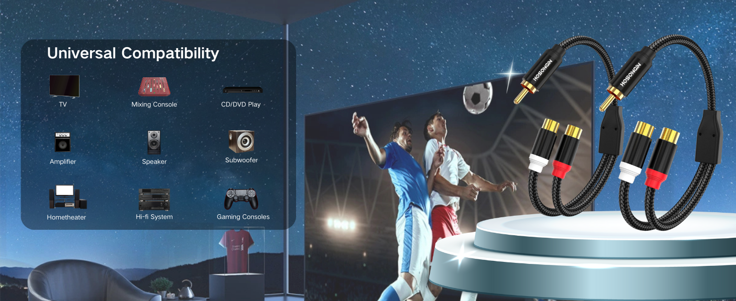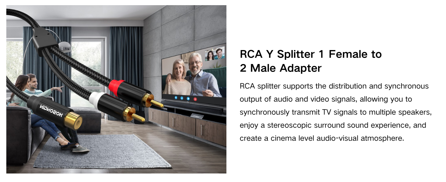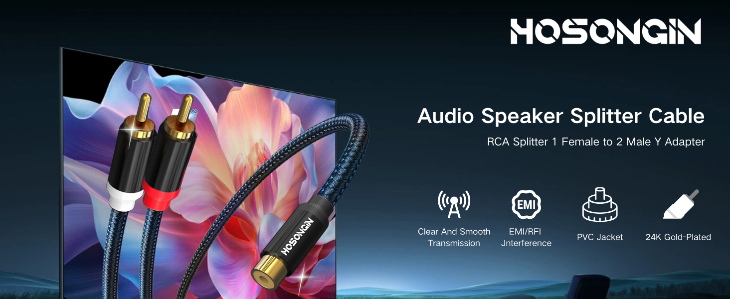 The HOSONGIN 1ft RCA Splitter (1 Female to 2 Male) is a premium audio adapter cable designed to split or combine RCA signals with minimal loss. Featuring double-layer shielding and 24K gold-plated connectors, it ensures durable, interference-free performance. Ideal for subwoofers, amplifiers, and other RCA-compatible devices, this 2-pack offers reliable connectivity backed by a lifetime warranty.