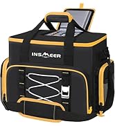 The INSMEER Cooler Bag Large offers a spacious 48L capacity that holds up to 65 cans, insulated with premium 5mm EPE foam and PEVA fabric to maintain temperature for 6-8 hours. Crafted from durable, scratch-resistant 600D nylon, it features leak-proof technology and easy-clean interiors. Designed for convenience, it includes foldable construction, multiple storage pockets, adjustable padded shoulder straps, a sturdy top handle, and a built-in bottle opener—perfect for beach trips, camping, picnics, and travel.