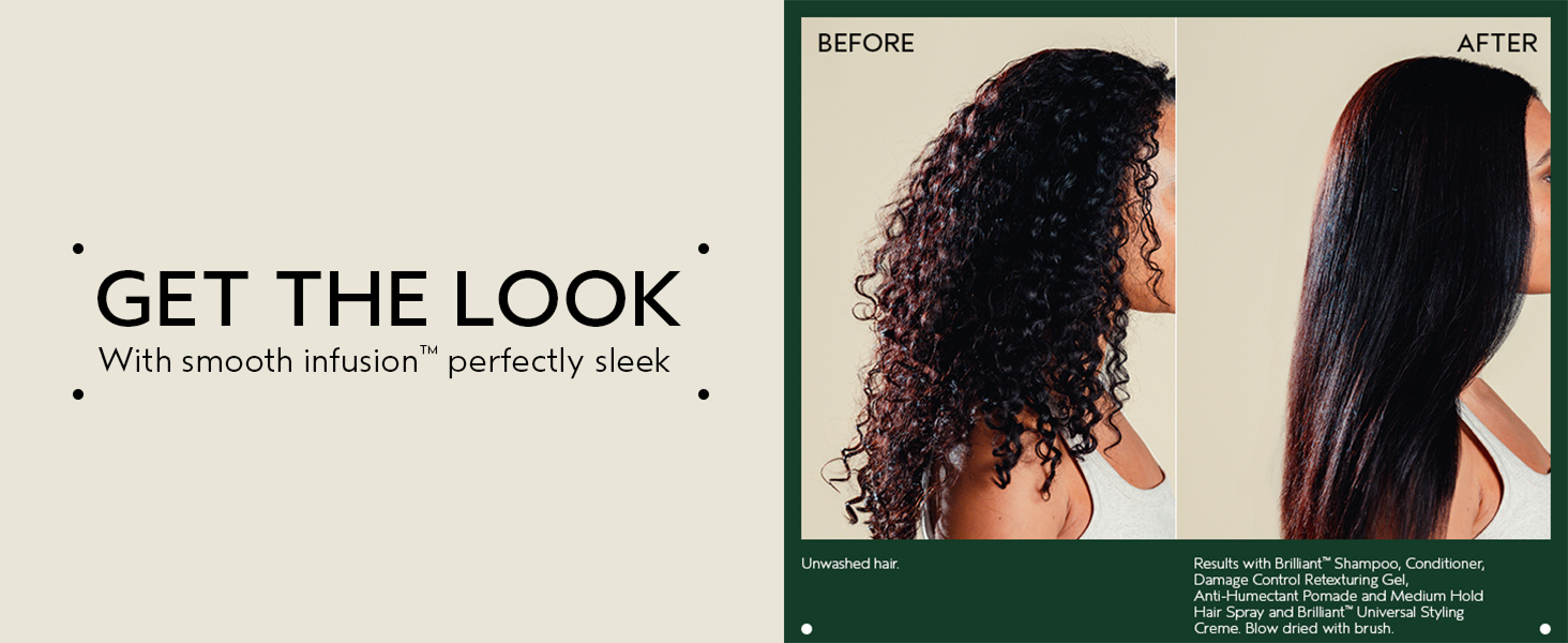 Aveda Smooth Infusion Perfectly Sleek is a 150ml heat-activated, silicone-free styling cream designed to gradually loosen curls and fight frizz. Infused with natural oils and vegan ingredients, it locks in humidity and transforms curly hair into sleek, polished styles without permanently changing the curl pattern.