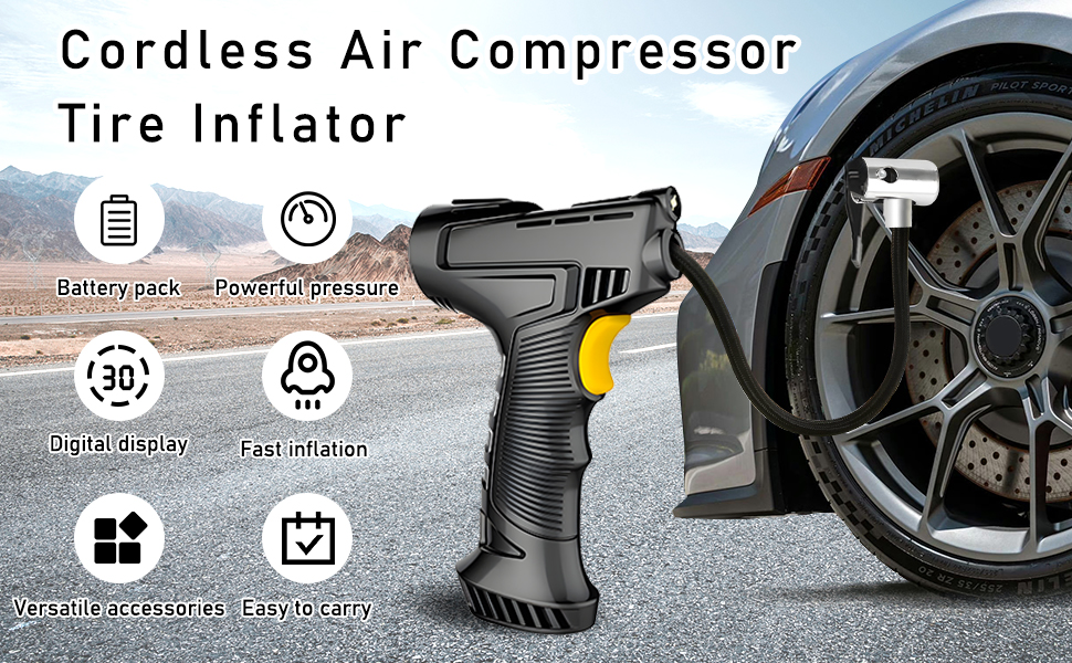 QST EXPRESS Cordless Tire Inflator Portable Air Pump,Handheld 120W Rechargeable Air Compressor with 150PSI with Emergency LED Light for Car, Bicycle, Balloons and Other Inflatables