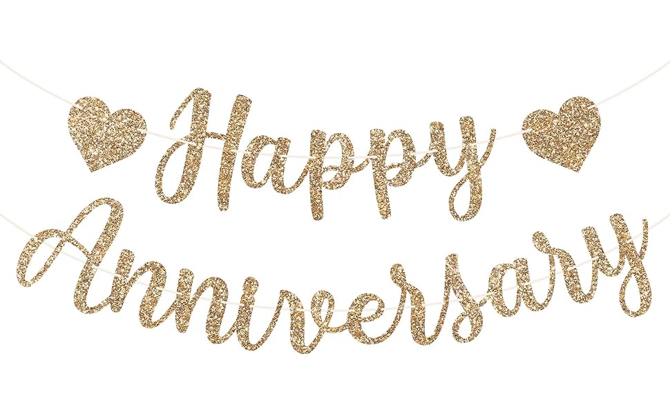 Pre Strung Happy Anniversary Banner No Diy Gold Glitter Wedding | Desertcart Greece