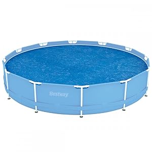 The Bestway 12-inch Solar Pool Cover is a lightweight polyethylene cover designed to float on your poolâs surface, providing effective heat insulation and reducing debris accumulation. Measuring 356 x 356 cm and weighing under 1 kg, it includes a convenient carrying bag for easy storage and transport, making it an essential accessory for maintaining a warm, clean pool with minimal effort.
