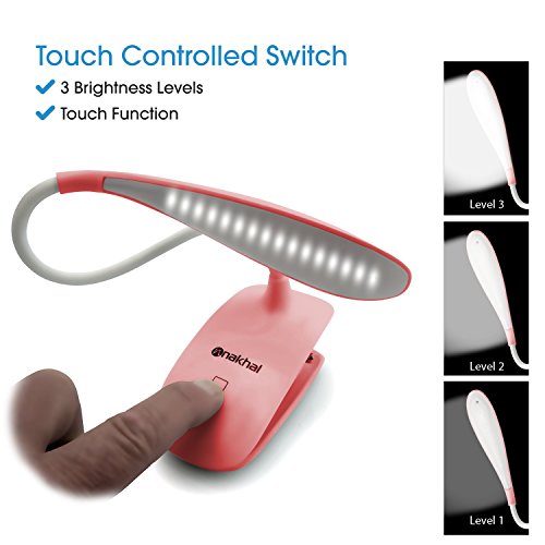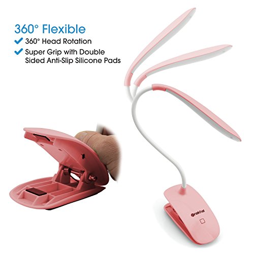 SAFETY INSTRUCTIONS ☼ Immediately recharge the lamp when brightness becomes dim. ☼ Charge the lamp for at least 2-4 hours before the first use. ☼ Fully charge the lamp at least once every two months. FEATURES SOFT FLICKER FREE LIGHT☼ Super bright LEDs & frosted glass cover produces soft light that is perfect for your eyes. Its light is radiation and flicker free. 360 DEGREE FLEXIBLE☼ 360-degree head rotation combined with wide clamp make this lamp useful in any position. Clamp with double sided anti-slip silicone pads, provide super grip. 3 LEVELS OF BRIGHTNESS WITH TOUCH CONTROL☼ The smart touch sensor helps you to select between 3 levels of brightness low, medium and full. Select according to your choice. 600MAH EXTENDED BATTERY LIFE☼ Built-in 600mAh rechargeable lithium battery. Extra long battery life, A full charge can provide 8H(low brightness), 4H(medium brightness) or 2H(full brightness) of operation. USB CHARGING WITH PROTECTION☼ Can be charged with any USB charger, PC or Notebook USB, CAR USB etc. built-in charging protection. SPECIFICATIONS ☼ Operating Voltage: DC 5V / 1A ☼ LED Quantity: 16 ☼ Power: 2.4 W ☼ LED Life: 50000 Hours ☼ Color Temperature_ 5500K-6500K ☼ Material: ABS and Silicone ☼ Battery: 1000mAh Rechargeable Lithium Battery ☼ Brightness: 3- level, 120lm (Max) ☼ Operating time: 8h (25% brightness), 4h (50% brightness), 2h (100% brightness) ☼ Operating Temperature: -10°C to + 40°C ☼ Switch: Touch Sensor ☼ Charging Time: 2.5 Hours PACKAGE CONTENTS ☼ 1 x LED Clip Light ☼ 1 x USB cable (Power adapter is included) ☼ 1 x Instrcution Manual