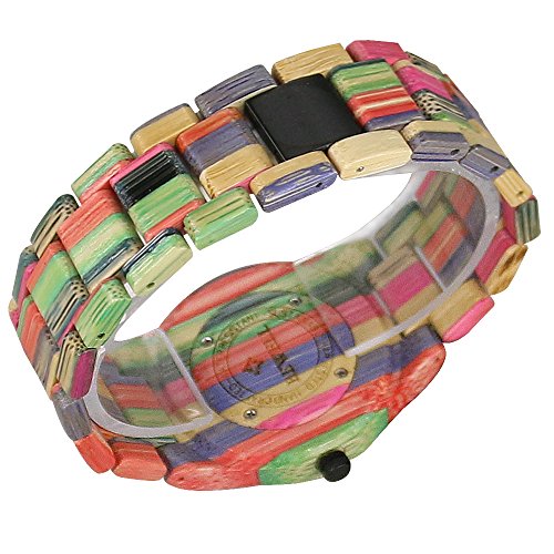Brand: BEWELL Model Number: 105DL Style: Colorful bamboo wood watch Features: Round dial, fashionable and charming style Color: colorful purple style:105DL01, Colorful pink style:105DL02,Colorful Movement:Japanese Quartz Movement Case Material: Bamboo Wood Band : bamboo wood Water Resistane: Life Waterproof,do not put it in the water or wear it bathing. Clasp type: Stainless steel Bracelet clasp Watch Window: mineral mirror,resistant and prevent scratches Band Length:22.0 cm(men)/ 19.5 cm(women) Band Width:2.4 cm (men)/ 2.0 cm (women) Band thickness:0.5 cm Dial Diameter:4.0cm(men)/ 3.5cm(women) Dial Thickness: 0.8 cm Weight: 0.053KG(men)/0.042kg(women)Package size: 25.00 x 5.00 x 1.80 cm Notes: 1. High quality Japan quartz movement makes the watch durable. 2. The wood watch is the most healthy, comfortable, and stylish way to tell time while being friendly to the environment. 3. Its natural beauty will attract everyone who always follow fashion trend, the colour is so easy to match your clothes. 4. If the watch is bigger to your wrist, you can take down one or more joints out of the strap. 5. The wood has been ordered in batches, and the natural colors of them are slightly different from each other, so the watches may have some color difference. 6. The watch is made from natural wood and is wrapped by hand, there maybe some spots of the wood or bamboo,and maybe some natural harsh lines and a few blemishes. Please note that it is not a quality problem. 7. Remove the watch strap must gently, cause the wood is easy to burst if hit too force.Operation structure can be offered if you do not know how to operate. Package Contents: * 1 X Wooden Women Watch