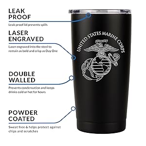 This is a very well made Tumbler and I could not be happier! It’s well insulated and I love the laser etching. I gave this to my Father who is a Veteran on the Marine Corps birthday. He was so touched that he teared up. I am a very proud daughter of this Marine and enjoy seeing him with his new cup when visiting him. Thank you! ❤️
