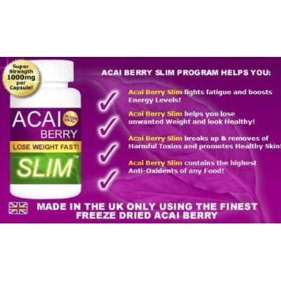 - 100% Pure Freeze Dried Acai Berry. Proudly Manufactured in the UK Vegetarian friendly Suitable for Men and Women. cai Berry Slim tm is widely regarded as the number #1 best selling acai berry supplement and has been consistently delivering weight loss results to thousands of customers worldwide. Acai Berry Slim is 100% pure freeze dried Acai Berry direct from the Amazon rainforest. Each Acai Berry Slim capsule is a massive 1000mg in strength and delivers ultimate weight loss results every time.xx Acai Berry Slim will help increase your metabolism which will help burn fat and thus lose weight. In addition Acai Berry Slim will improve your energy and general health and well being. The feedback and comments we have received from customers that have used this product is