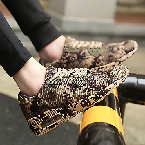 Production Details 1. Upper material: Classic Camouflage pattern suede upper. This is the new modern shoes to reflect your personal style. 2. Streamline the shoe body is better for foot wrap, for more robust pace, air sole effective movement of the pressure, reduce the foot pain from sports for a long time. 3. The height of the sole is 4 cm. It will lengthen your legs' looking, make you more confident. Environmentally friendly organic rubber with patterns inspired by tires makes the sole highly anti skid. 4. Colors: Brown, Green, White. Suitable for daily life, sport, athletic, competition, trail, training, jogging, running, hiking, indoor, outdoor, any occasion, casual and trendy. 5. It fits for women , men and couples. Choose one pair of shoes, send theme to the one who you love. Do sports together! Please Choose Size According to The Size Chart Below: Size Chart EU 36/UK 3= foot length 230mm=9.06 in EU 37/UK 4= foot length 235mm=9.25 in EU 38/UK 5= foot length 240mm= 9.45 in EU 39/UK 6= foot length 245mm = 9.645 in EU 40/UK 7= foot length 250mm = 9.842 in EU 41/UK 8= foot length 255mm =10.039 in EU 42/UK 9= foot length 260mm =10.236 in EU 43/UK 10= foot length 265mm =10.433 in EU 44/UK 11= foot length 270mm =10.629 in Suggestion: ❤ Asian size shoes, please check SIZE TABLE IN DESCRIPTION(Not the Amazon Size Chart) before purchasing. Size: please allow 0-3 mm difference due to manual measurement. Note: ❤ If your feet is bit wide, instep is bit thick, or toe is bit long, recommend select ONE SIZE UP. ❤ The color may different from the picture because of the image resolution.If you have any problem with the shoes, please feel free to contact with us. We will resolve for you asap. We are at your service always!