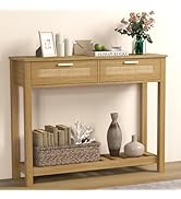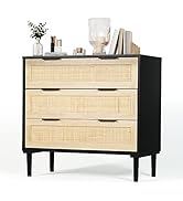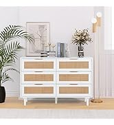 The FUQARHY 6 Drawer Dresser combines modern minimalist design with natural rattan accents, featuring six spacious, soft-close drawers crafted from durable, water- and scratch-resistant MDF wood. Measuring 43.3"W x 15.7"D x 29.5"H, it offers versatile storage solutions for bedrooms, living rooms, or hallways, enhanced by gold metal pulls and built-in cable management for added functionality.