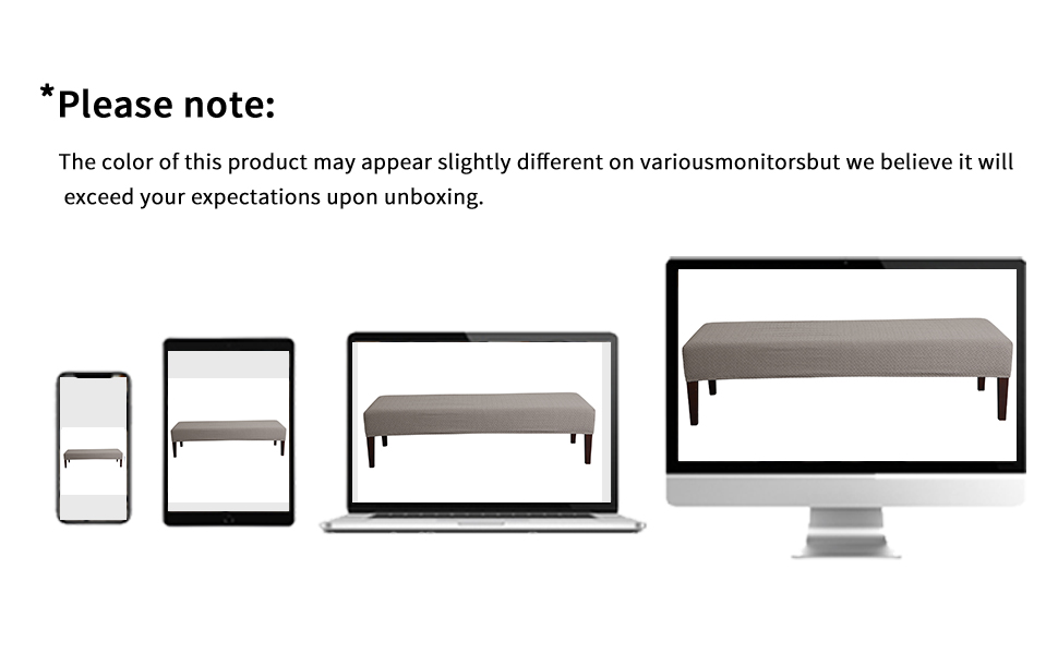 The intended goal was successful to cover an existing bench for under $20. However, the 'seersucker' is measleading since it refers to the slight resemblance to that pattern with the actual fabric being simply a puckering design, made of a very thin material, which is rather see through. The existing cover is slightly visible due to the thin quality of the fabric as is the ability to get the fit. I am fine with the legs showing which was intended and the fit is ok. I doubt it is very washable or durable but will work for a guest room.