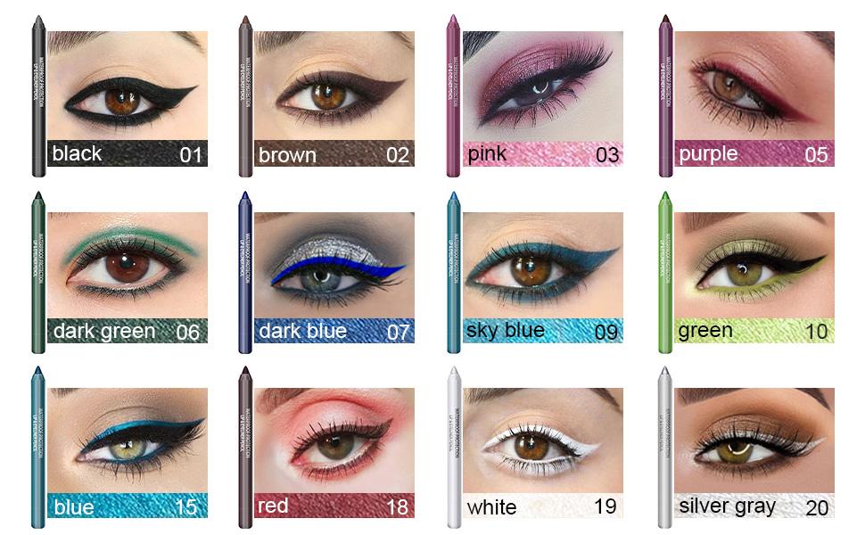 The SYOSI Eyeliner Pen Set offers 12 richly pigmented, waterproof, and smudge-proof gel eyeliners in matte, glitter, metallic, and pearl finishes. Designed for multifunctional use as eyeliner, eyeshadow, lip liner, and eyebrow pencil, this professional-quality set delivers smooth application and long-lasting wear, perfect for diverse makeup looks and occasions.