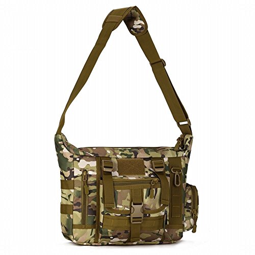 This shoulder bag offers you a stylish and casual life style. There are several pockets inside and out to fit all the things you may need to carry. It's roomy enough to hold your tablet, laptop, couple of battery banks and cables. The pockets are deep enough that nothing falls out and the zippered inner compartment keeps everything nice and tidy. It's convenient to adjust the shoulder strap to appropriate size and make the bag comfortable to wear. This shoulder bag also looks masculine in appearance and durable enough for all but the harshest conditions. Structure: 1.Exterior: The area of Velcro on front is adapted to stick patch or name tag to show your individuality. Adjustable QD buckle compression straps on the front cover. D shape buckle. Molle external expansion system. Adjustable shoulder strap. 2.Interior: One zippered pocket in the main compartment. 3.Outer Material: 1000D high-density oxford nylon that can withstand the toughest conditions. It is easy to clean due to the nylon material. 4.Inner Material: Water-resistant silky cotton that can ensure the strength of the product while ensuring long-term use in wet environments. It will not rot after the invasion of water. 5.Hardware: Metal+Lengthen the rope pull head. Heavy duty zippers that work smoothly. Note: 1.It may has a fabric odour due to the nylon material. Please open the bag to release the fabric odour before using. 2.Photo pictures and physical color may be different due to shooting light problems. 3.Hand wash with cold water.