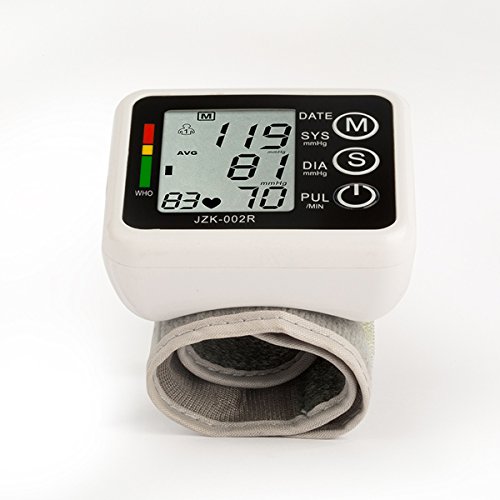 Features: Using the oscillometric blood pressure measurement, more accurate to measure the blood pressure. Average calculating for the latest 3 times measurement value. Voltage power detection and low power consumption. LCD digital display,it is very legible. Intelligent pressure and WHO warning message function. automatic off with no operation in 1 minutes . The overpressure protective function. Large-scale digital display screen and high-accuracy. Year/month/date/time function. Instruction: 1. "M" button: for memory check or switch to another person. Note: press it once, display the average of last 3 readings. Press twice, display the last reading. 2. "S" button: for setting Specifications: Color: White Product size: 3 x 2.6 x 2.5 inches / 79 x 66 x 64.5mm Large LCD size : 1.8 x 1.5 inches / 47x39mm with digit height 14mm Accuracy :Pressure +/-3mmHg; Pulse+/-5% Power by: 2 AAA size alkaline batteries(not included) Size of the package: 88*87*87mm Package included: 1 x Wrist Blood Pressure Monitor(has backlight) 1 x User manual Package Content 1 x Wrist Blood Pressure Monitor 1 x Storage Box 1 x Instructional Manual
