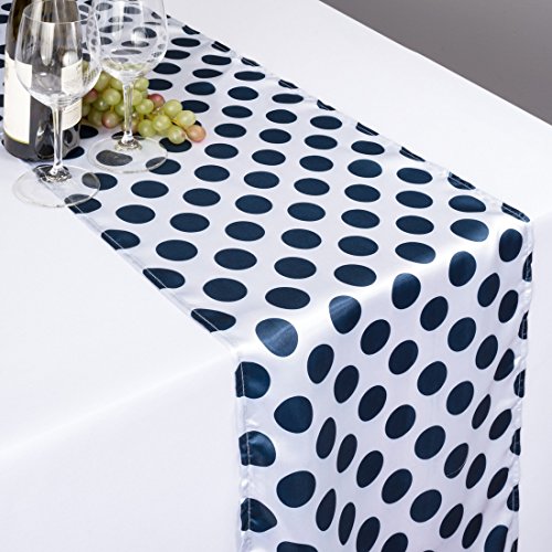 14 x 108 in. Polka Dot Satin Table Runner White / Navy Blue