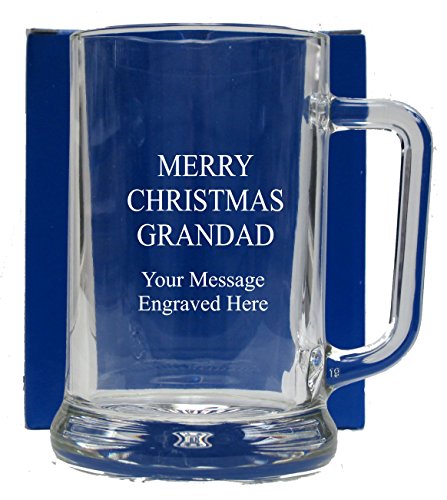 Here we have a lovely engraved glass tankard. We can engrave any text or message onto the Glass For personalisation on the gift just add details in the gift message box, whilst paying for the item, otherwise it will be sent with LOGO only