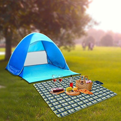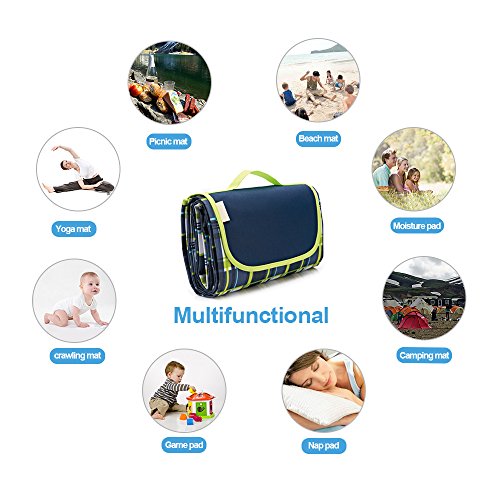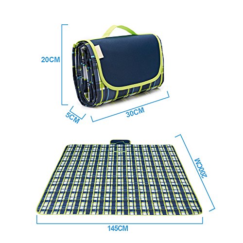 Product Description Material: Polyester Oxford; Extra large measures 57"x78"; Easy-to-Fold, Easy-to-Carry, folds down to size of a purse; Extra large picnic blanket tote for outdoor activities; Easily rolls up and includes convenient carrying buckle/strap so simply grab it when you need it; Great for picnics, outdoor concerts, star gazing or as a car blanket; PVC waterproof layer, effectively cut off from the wet ground; Velcro lengthened design, can withstand million times gluing test; Delicate traces, edging, as strong protection for outdoor action. Package included 1 x Carrying Case Camping Mat