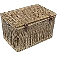 The JVL Handmade Buff Wicker Hamper is a large, stylish storage solution crafted from handwoven willow, featuring faux leather straps for secure closure. Measuring 54 x 36 x 32 cm and with a generous capacity of 62 liters, this eco-friendly accessory seamlessly blends with any decor while keeping your space clutter-free.