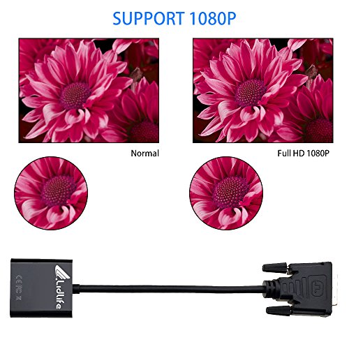 Convert a DVI-I signal into a VGA Signal DVI-D to VGA Active Converter connects DVI compatible systems with a DVI-D output to VGA equipped monitors and displays. It can support displays of up to 1080p or 1920 x 1200 PC graphics and is ideal for your office, home entertainment display, conference rooms, and more. Specification: 1. DVI-D 24+1pin Male to VGA Female with slim connectors; 2. Supports resolution up to 1080P; 3. Supports analog signal only, and DVI & VGA do not support audio output; 4. Gold-plated connectors to optimize its performance; 5. Compatible with Flat Panel Displays, Digital CRT Displays, Projectors, and HDTV 6.PC resolution supported: 800x600, 1024x768, 1280x768, 1280x800, 1280x960, 1280x1024, 1440x900, 1600x1200, 1680x1050 @60Hz, 1920x1080 @60Hz, 1920x1200 @60Hz 7.HDTV resolution supported: 480i, 576i, 480p, 576p, 1080i and 1080p @60Hz 8.Chipset: EP94Z1E 9.Bandwidth: Up to 1.65Gbps 10.Audio: None 11.Length: 19cm Package Contents: Lidlife DVI-D to VGA Active Converter M/F - Black x 1