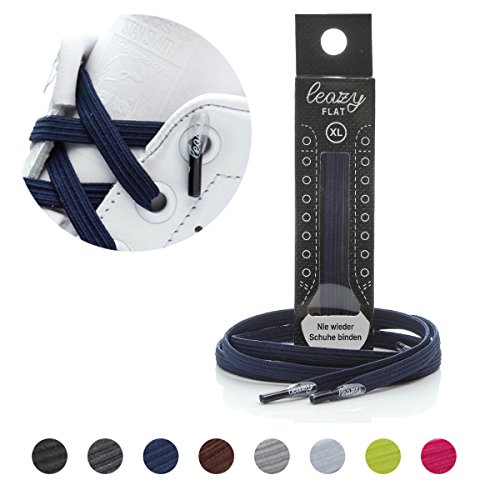 COMFORTABLE, QUICK AND EASY with LEAZY - practical no-tie flat shoe laces! No more knots, no more bows with LEAZY Laces! Our LEAZY elastic shoe laces are designed to make it faster and easier to put on and take off shoes. They ensure your shoes stay snug. No more tripping over long laces. LEAZY laces are perfect for sports or strolling. LEAZY laces are a great alternative to traditional laces - they save athletes time and they save parents time because they make putting on shoes easy for kids. They're also great for seniors and the physically challenged. Easy-peasy with LEAZY! Lace up these self-tying shoelaces like conventional shoelaces, and then simply anchor the end-tip into the top eyelet. LEAZY laces stay snug one they're laced up. Their stretchiness ensures maximum comfort and stability and a perfect fit. LEAZY laces are available in 4 different sizes (S/M/L and XL). Size depends on the number of eyelets (4 to 7 eyelets per side). Recommendation: If you're not sure what size to pick, choose laces one size larger. If the laces are too long, you can thread the tip back into the same eyelet, in the opposite direction. Since every shoe is a bit different, so we recommend the following sizes, depending on the shoe models: Up to 4 eyelets per side