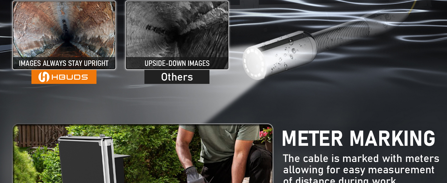 The HBUDS Sewer Camera Self Leveling truly stands as the epitome of innovation and practicality in the field of underground inspection.To start, the 100ft cable length is a game-changer. It provides ample range for surveying extended lengths of drain pipes, making the job significantly easier for both homeowners and professionals alike. The integrated meter counter is a thoughtful addition, allowing precise tracking of the camera's progress through the pipe.The self-leveling feature is not to be overlooked. It ensures that the view remains upright, irrespective of the twists and turns in the pipeline. This results in clear, consistent footage that is incredibly valuable when diagnosing issues or performing routine maintenance checks.Moreover, the 12V 4500mA battery is robust and reliable. It provides generous operating times, meaning fewer interruptions to recharge when tackling larger projects. This endurance, coupled with the camera's high-quality imaging, makes it an invaluable tool for any detailed underground exploration.The quality of the footage is superb, with clear, crisp images that illuminate the pipe's interior, revealing all its hidden aspects. The bright LED lighting ensures visibility even in the darkest of pipes, capturing every detail and potential issue in high resolution.The build quality of the HBUDS Sewer Camera is also impressive. Its robust, waterproof design can withstand the harshest of conditions, promising longevity and exceptional performance even in the most challenging environments.In conclusion, the HBUDS Sewer Camera Self Leveling is a well-crafted, innovative piece of technology that simplifies the complex task of sewer inspection. Its impressive features and reliable performance make it a must-have tool for anyone in the drain and sewer maintenance field. It garners a well-deserved five-star rating.