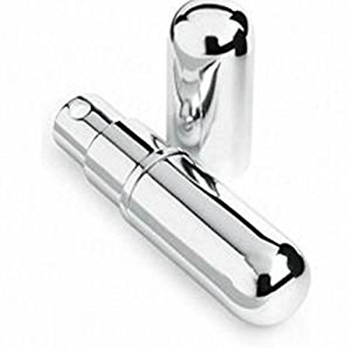 Silver and Chrome Perfume Atomiser (5ml Capacity). Ideal wedding favour for bridesmaids or mums. Compact and discreet. Size 85mm x diameter 19mm
