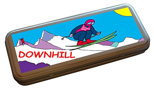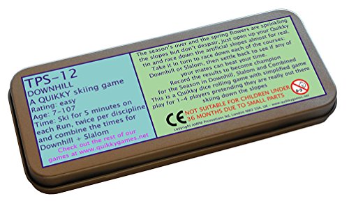 Does Downhill skiing make for an interesting boardgame?A good question indeed, but we try to cater for all sports and some are just more complex and varied than others. This one may be for the real fans but we've only had one bad comment to date which is why we have added these words of warning. We leave it up to you but there is a certain thrill in relying on the throw of the die to determine your progress.Choose which event to run - Downhill or Slalom, each having its own course to descend, and in turn race down the slopes by throw of the die to set a time for your opponents to beat and then do it again for a Combined Time to Win the eventThis is a Quikky dice rolling game with simple rules for 1 to 4 players - but any number can in practice participate.This game is not suitable for small children [under 36 months] due to small playing piecesHi there, just wanted to clarify what our games are about. They are a simple mechanism for enthusiasts to imagine they are really out there competing in whichever, and in fact nearly every, sport. They are intended to be portable fun not educational. Imagination is a big part of our games All the games are designed by us [ie both the gameplay and the images] and are printed, applied and assembled individually for you on the day they are posted.