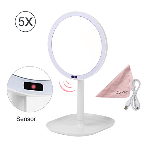 Still upset at blur of the ordinary mirror when you should make up in a hurry? Have you cosidered a led motion sensor magnifying makeup mirror? ▷▷Solve your troubles: 1. Lack of light, put on makeup unevenly. 2. Non-magnification, can not see the details for eye makeup, wear contact lenses etc. 3. 7x or 10x magnification, the distortion makes it hard to really see clearly, also can't see your whole face in the mirror. ▷▷The Loncwo makeup mirror designed for women who prefer to look flawless every day. 1. Lack of lighting or under the wrong lighting, makeup colors can fool you. Our Loncwo light systems simulate natural sunlight for the bright and right view. 2. 5X magnifying extremely close-up view for detail work like tweezing and applying eye makeup. 3. 5X magnifying can also view your entire face at once in exceptional detail, no distortion, look more natural. The Loncwo 5x lighted vanity mirror is the perfect accessory whether you're applying makeup, grooming or shaving. Place on your counter, table to enjoy the bright clarity of this mirror. ▷▷Specification: Magnifying: 5X Weight:0.62kg Mirror Size: with a radius of 10cm Material: ABS Power Supply: USB chargeable or 4 pcs AA battery powerd(AA battery not included, USB cable included) ▷▷Package Includes: 1 x Lighted Vanity Mirror 1 x USB Charging Cable 1 x Cleaning Cloth 1 x User Manual ▷▷Note: 1. Do not charge with USB and battery at the same time. 2. This mirror can not store power. 3. The distance between your face and mirror need to be controlled within 18cm, to avoid the feeling of dizziness.