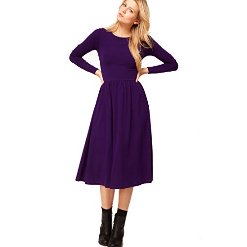 Fab ladies jersey style dress Round neck, long sleeve Fitted on the bust and arms Gathered elasticated waist Full midi length skirt Classic look for all seasons Available in a wide selection of colours from size 8 - 20 Manufactured in the UK