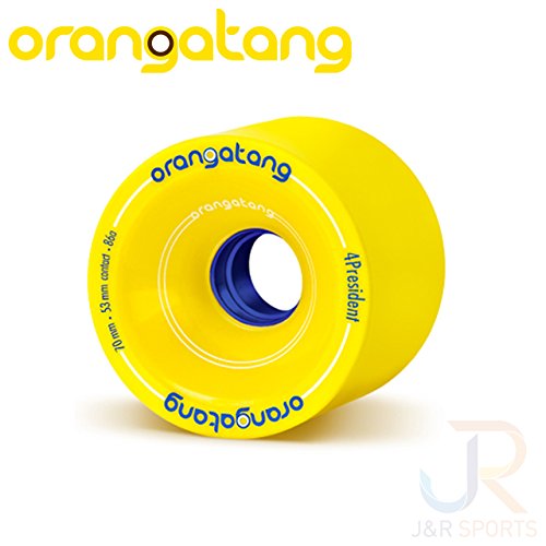 The Orangatang 4President wheels are really versatile and work well with any setup. With the off set core they will grip hard and hold well until you need them to slide out with ease. 80a: Orange - Soft and grippy 83a: Purple - Harder, faster, slidier 86a: Yellow - Fast and slidey