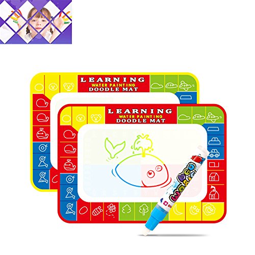 Description: Using a magic pen(included) filled with water, this mat will create fabulous doodles and images to the amazement of your children. You don't need any ink, pens or paint to start making pictures on this magical floor canvas. The drawings will magically disappear in few minutes ready to doodle again. Writing,Drawing,Doodle,Stamp and so on,Open up the kids imagination. Foldable and Lightweight,perfect for Indoors and Outdoors Use. Instruction: -Fill the pen with water: 1)Spin clockwise to open the pen 2)Add water 3)Spin anticlockwise to close the pen 4)Star doodle Package: 1 Doddle Mat 2 Water Drawing Pen without Caps(Random Color)? OPP bag packing