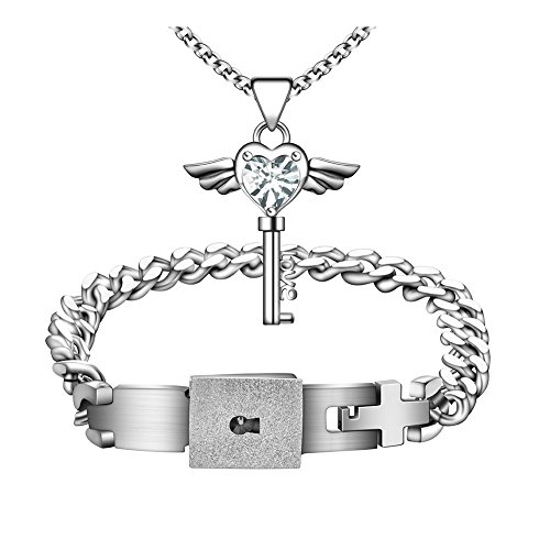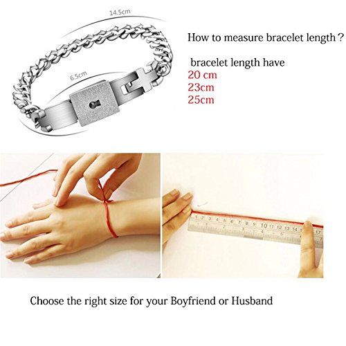 Description: 1. Paquet:Envoyé au hasard 2. The chain measures at 50cm/ 19.68" ,The pendant is made of 925 sterling silver, the heart has wings which holds a crystal. Necklace crystal with eight hearts and eight arrows, metaphor "encounter、love、hint、dream system、first kiss、touching、tacit understanding and oath" eight beautiful artistic conception. The teeth on the key spell out "LOVE", and fits into the bracelet as a key to take it off. Necklace is very delicate and feminine. 3. The bracelet's Length: 20cm /7.874 ",23cm /9.0551",25cm / 9.843" and is not adjustable.It has thicker links and designed as a mans bracelet.Linked into the bracelet there is a silver cross which then is linked to the part which is where the key is placed.It is made with Titanium and 925 Sterling Silver,Corrosion resistance、Oxidation resistance、do not fade、do not rust、do not harm the skin、harmless to human body 4. Application:Valentine's Day、Wedding、Party、Dinner、Banquet、Birthday Present、Family Gathering、Marriage Anniversary、Confession、Love Memorial Day、Holiday Gifts、Couple small surprise、Leisure Venues、Daily 5. Our products are well made with top material and excellent craft, and normally will not fade easily. But they may be damaged if used by inappropriate wearing habits. But like all other jewelry, it should try to be avoid contact with chemicals; avoid impact and cut flowers;alloy material to avoid moisture;gently wipe with a soft cotton;Not wear jewelry when you keep in the box, If kept well, they will look brand new for long time.