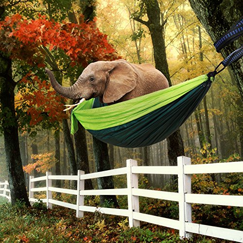 FYHAP always provides the best hiking hammock to customers, our portable lightweight hammock is ultra comfortable and SOFT. Why do you choose from us? Specifications: Material:210T Nylon fabric Color: Green + blackish green Max Loading: 300kg (fit 2 person) Package weight: 1.28 lbs Package size: 8.2 * 6.6 * 2.7 inch Compact While Spacious When folded into it's attached stuff-sack, you won't even know it's in your backpack! It's small and weightless. Once unfolded, it's a different story. This beauty has a spacious & supremely comfortable sleeping bed. Versatile Made of extremely strong and durable rip proof parachute nylon, this jungle hammock is nearly as large as a queen-size bed. Perfect for hiking, backpacking, long-term trekking or camping. Multifunction Ideal as a tent replacement, this Camping Hammock is lightweight, compact and can be taken anywhere. Package list: 1 * Hammock 2 * Hanging Buckles 2 * Ropes (80 inch) 1 * Storage Bag Take this, enjoy your journey!