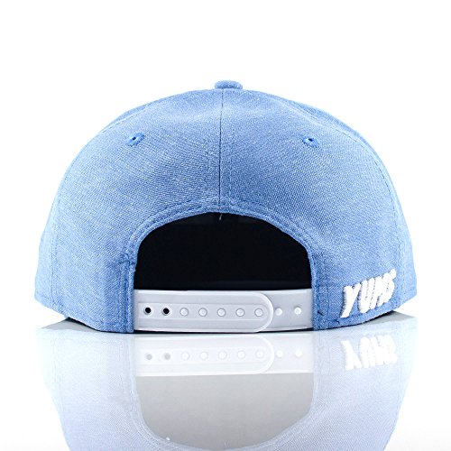 • YUMS® 'Classic Outline' Snapback • Embroidered and raised front logo • Embroidered YUMS® rear logo • Snapback closure for adjustable fit • Interior includes branded taping and moisture absorbing sweatband • Colors: Blue/White • Structured fit, mid crown, normal bill