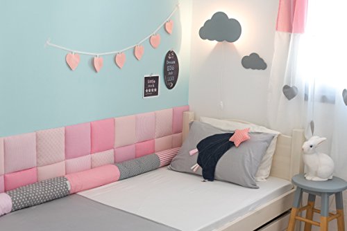 Baby "Snake" bed bumper, a soft & protective environment for your baby.This designed bed bumper is made out of 5 different high quality printed cotton fabrics, and colorful ribbons in both ends. Filled with a delicate hypoallergenic hollow-fiber.The bed bumper makes a beautiful and an extremely useful gift. Can be used as:★ Diapering area pillow.★ Crib, junior bed or toddler bed bumper for a soft & protective bed surrounding.★ Nursing pillow★ Develop motor skills - Strengthen baby's shoulder belt area.★ Developmental object - the ribbons in both bed bumper and stimulates the baby's sense of touch.★ accompanies the baby from birth to the late childhood as a bed decoration.*Available in 7 different color combination- Blue & Grey, Pink & Grey, Green & Grey, Purple & Grey, Beige & Grey, Black & White, Aqua & Grey.*This product is handmade sewn, using quality materials for a long lasting use of product.* Dimensions: Length - 78.7 (200cm)* Diameter -5.5 inch (13 cm).*Wash instructions: machine wash 30° -air dry, do not tumble dry.*Materials: High quality soft cotton fabric filled with hypoallergenic hollow fiber.*As this item is made to order, please allow 1 week for the item to be made prior to shipping.*Each item is beautifully wrapped to be given as a gift.*I would love to answer any question you have, please feel free to contact me.