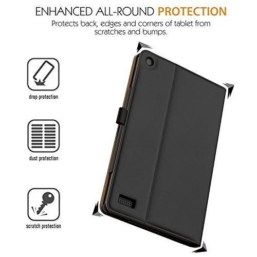 Compatibility: Custom designed for your precious All-New Amazon Fire 7 2017 Tablet. This MoKo case features a combination of functionality and style. Well built to protect your All-New Amazon Fire 7 2017 Tablet for the years to come. Product Description: Folding cover case, lightweight and protective. Automatically wakes or puts All-New Amazon Fire 7 2017 Tablet to sleep when the lid is opened and closed. Access to all features and controls. Multiple slots able to set up multiple horizontal stand angles for watching movie or typing. It comes with a side pocket that can store other accessories such as cashes, credit cards, bank cards, and cables and so on. About us: This product is sold exclusively by BSCstore. Only buy from BSCstore to get genuine MoKo products with Lifetime warranty and superb customer service. MoKo is registered trademark of BSCstore and is exclusively distributed by BSCstore on Amazon. MoKo trademark is protected by US Trademark Law.