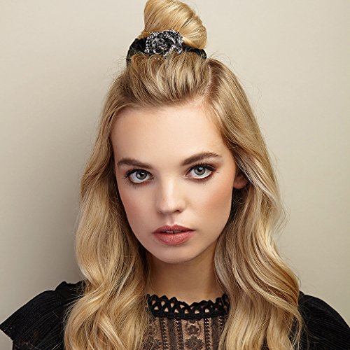 - Baroque styling with black velvet scrunchie band