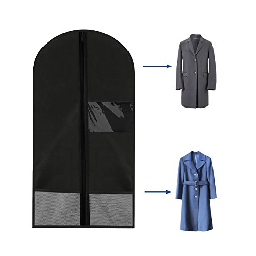 The best bag on the market: it has the most functions!!! including: Bigger size than standard ones, top-class quality of tear-ressitant material; #5 zipper, full length zipper; viewing window; maintianing protecting and storing your clothes during travel; our garment bags are convenient. Size:bigger (23"x52"x3")than standard garment bags, For carrying, organizing and protecting all of your valuable clothes from getting wrinkledFresh and clean! Keeps your clothes clean and fresh Avoid mould smell from storage;keeps your clothes fresh and ready for wearing. The bag is completely breathable and allows air circulation ; meanwhile, it keeps dust,debris or moths away. The unique and clear viewing window minimizes your guessing of what is inside. Easy for storging and organzing Bottom design with mesh bag : you can easily find jewelry or accesories to match your clothes from the completely see-through mesh bag to save you time.You can also store some other small items for matching your wearing or store your underwear. Everything fits perfectly. Can be used for : Protection and storage of suits Storage of seasonal coats and wollen sweater Business trips Formal and wearproof maintenance Wedding garment & party costume and more The garment bag can be folded for easy storage with least trouble when it's not needed. Big size:23inch x52inch(58x130 centimeter) Material: specially made oxford fabric 65% polyester fibre plus 35% cotton Color: black NOTE: This bag can be washed completely!!