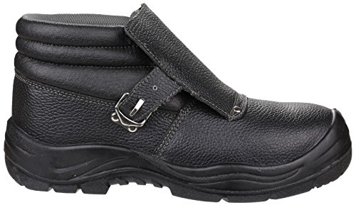 200 Joules steel toe cap. Anti-penetration steel midsole. Water resistant leather upper. Fire resistant Kevlar stitching. Padded PU collar. PU scuff cap. Removable EVA footbed. Antistatic. Injected PU midsole. Rubber outsole heat resistnat to 300 degrees