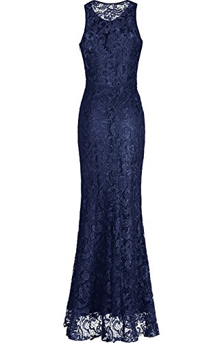 Absolute RosyProduct DescriptionThis elegant maxi dress comes in multiple colors and styles including; light stretch, natural waistline with darts, invisible side zipper, plunging illusion neckline with a see through back. Feel stunning and sexy in this dress. Perfect for homecoming, formal, prom, dances, parties, bridesmaids, weddings, or any celebration. Pair it with heels and a bracelet and long earrings to sparkle and shine all night long.Product Features-Sleeveless-Quality lace overlay; Illusion Neckline, Center Front Slit, Waist and Dart Piping, Floral lace shell, Navy lining, sheer lace neckline and back.-Sizing Information (Inches- Measured Across)SMALL- Bust 32-34 in, Waist 26-27 in, Hip 33-36 in, MEDIUM- Bust 34-36 in, Waist 28-29 in, Hip 37-39 in, LARGE- Bust 34-36 in, Waist 28-29 in, Hip 40-42 inJUNIORS SIZING. Please note measurements may differ by 1-2 inches due to manual measure.