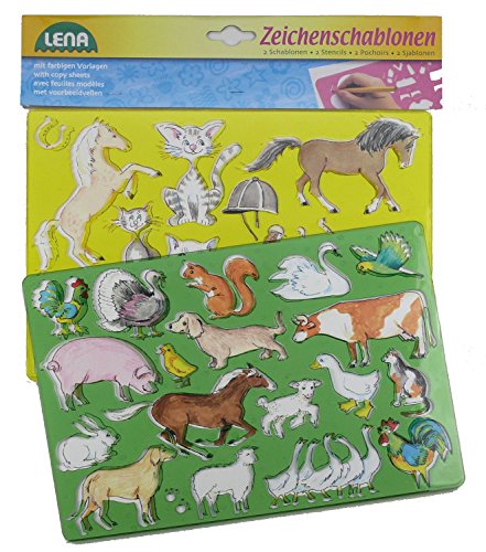 SIMM Spielwaren Lena 65767 Drawing Stencil Stencil of a Horse/Cat, 26 x 19 cm Pack of 2