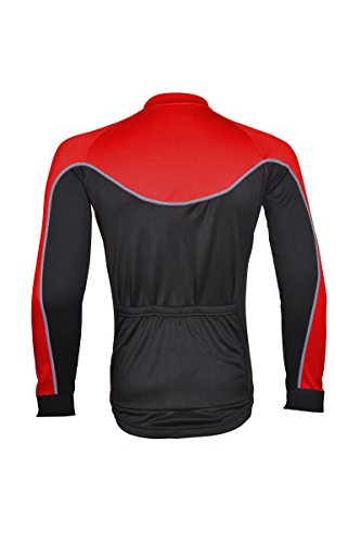 Mens Cycling full sleeve Jersey: Quick dry, Lightweight and Breathable. Ideal for COLD WEATHER. Flat stitched panel construction ensures maximum comfort. Full length zipper jersey. 3 rear pockets. This product is 100% Genuine and come with tags. Available Colours: Black/Blue, Black/Red, (as shown) Good Quality Fabric. This item is a tight fit design and if you want to a little loose please choose one size bigger. SIZE CHART Size Chest (inches) Arm Length (inches) S 36-37" 29.5" M 37-38" 31.5" L 38-40" 32" XL 40-42" 32.5" XXL 42-44" 33" *These sizes compliance with UK standard sizing guide.